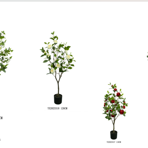 Similar to other artificial trees, the RED CAMELLIA artificial tree comes in different heights and sizes to meet various decorative needs. It could range from a relatively small size, perhaps around 2 – 3 feet tall for tabletop or small corner displays, to a larger size that might be 5 – 7 feet tall for floor-standing arrangements in larger rooms or entryways. The width of the tree also varies depending on its height, with smaller versions having a width of 1 – 2 feet and larger ones spreading out to 2 – 3 feet or more at their widest point.